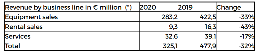 At the end of September 2020, equipment sales was down -33%, services business was at -17% and rental activity was significantly down -43%, impacted by the health situation in Latin America.