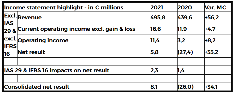 - A positive net result of € +5.8 million (excluding IFRS 16 & IAS29)