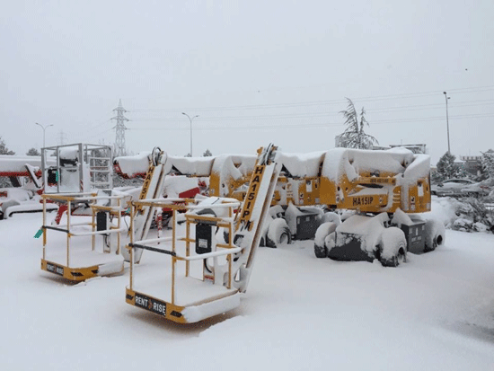 • Ensure proper traction: Snow and ice reduce tire grip. Use MEWPs with all-terrain capabilities or chains if necessary.